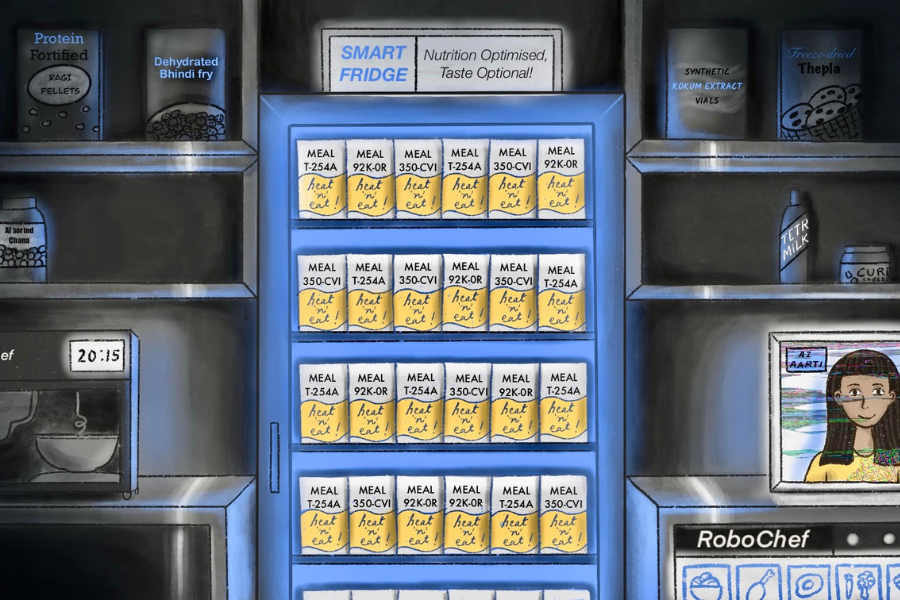 A speculative journey through taste, memory, and survival in 2100 India.